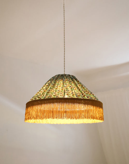 Suspension Bella “bohemian flora” : luminaire bohème chic à frange, fabriqué en France