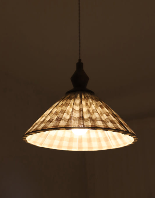 Suspension plissée "Olga" tissu à carreaux kaki et finition bois tourné