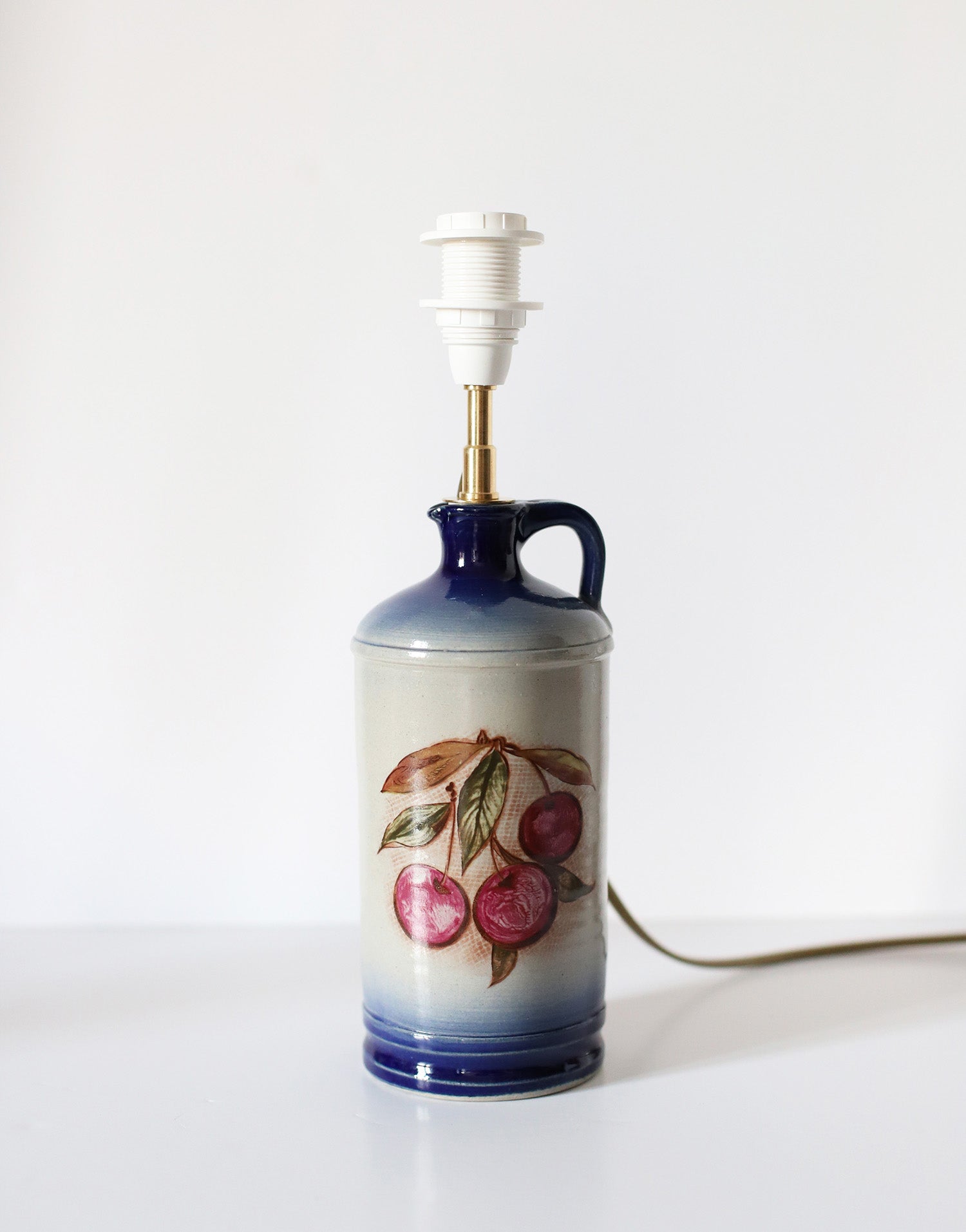 - Pièce unique : carafe alsacienne patinée, peinte à la main, devenue pied de lampe.