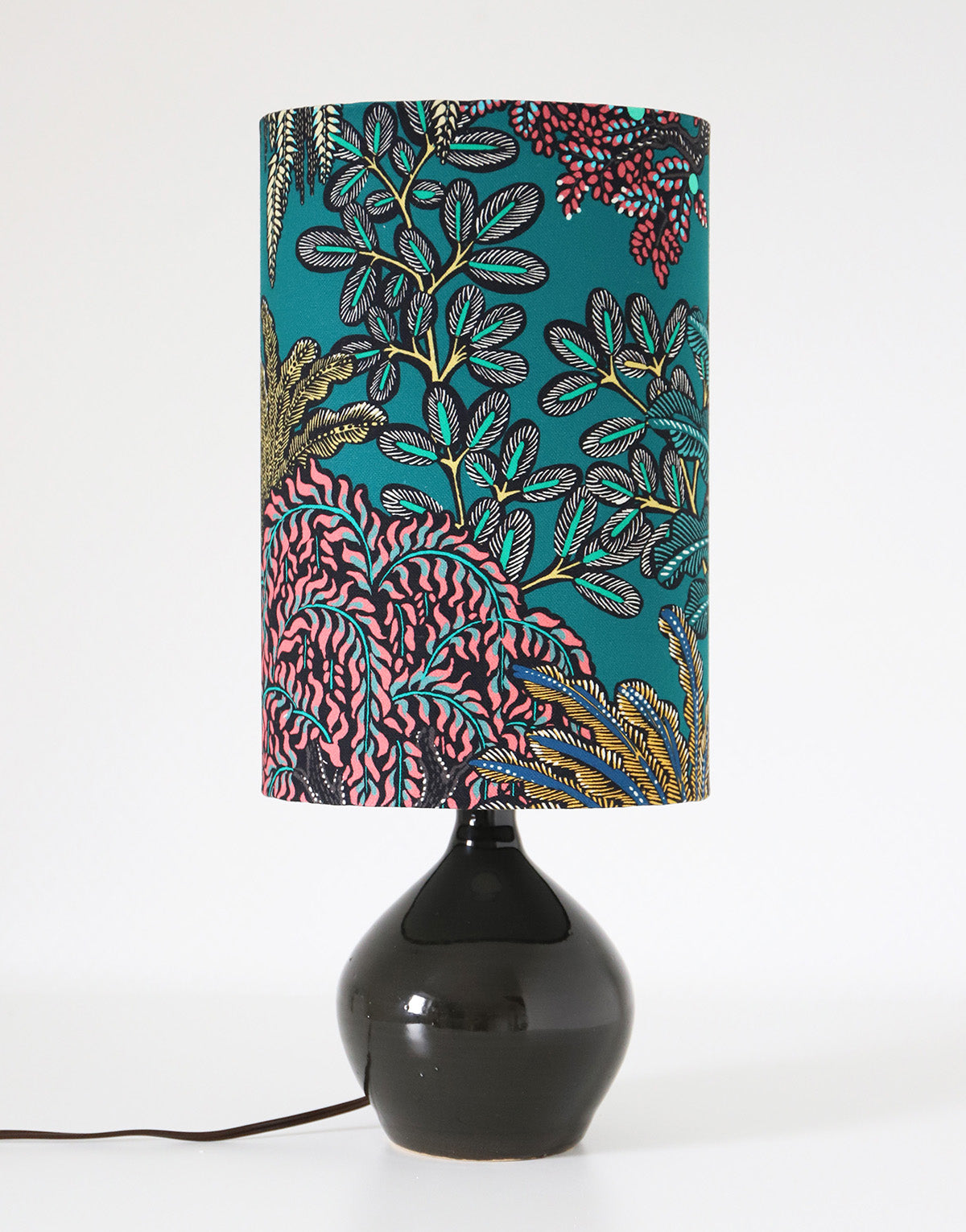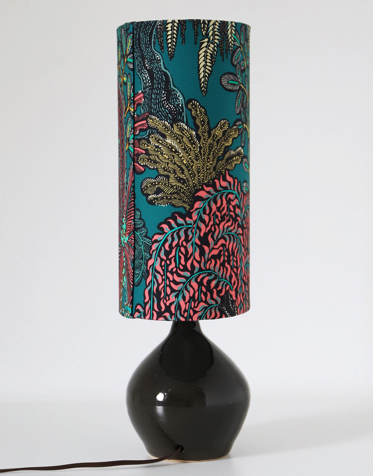 Lampe en grès émaillé années 70 abat-jour oval imprimé