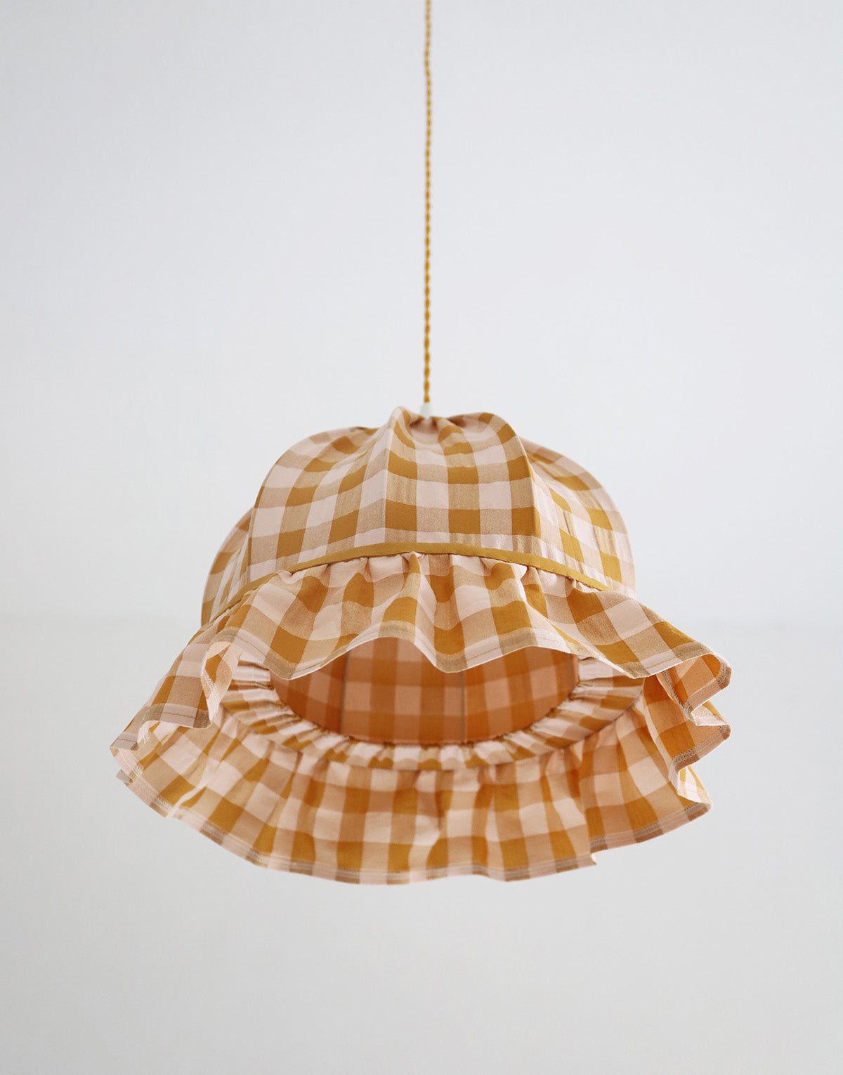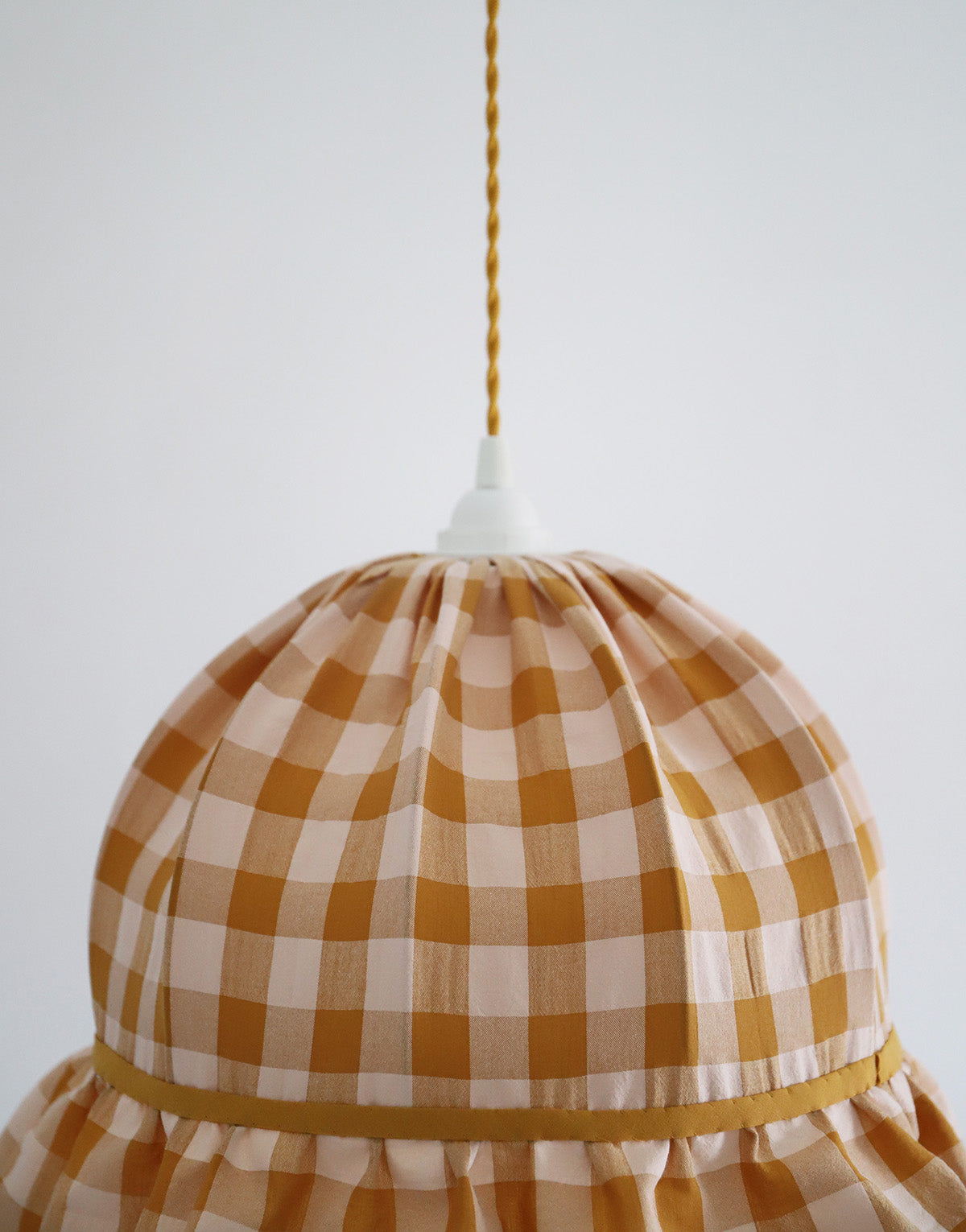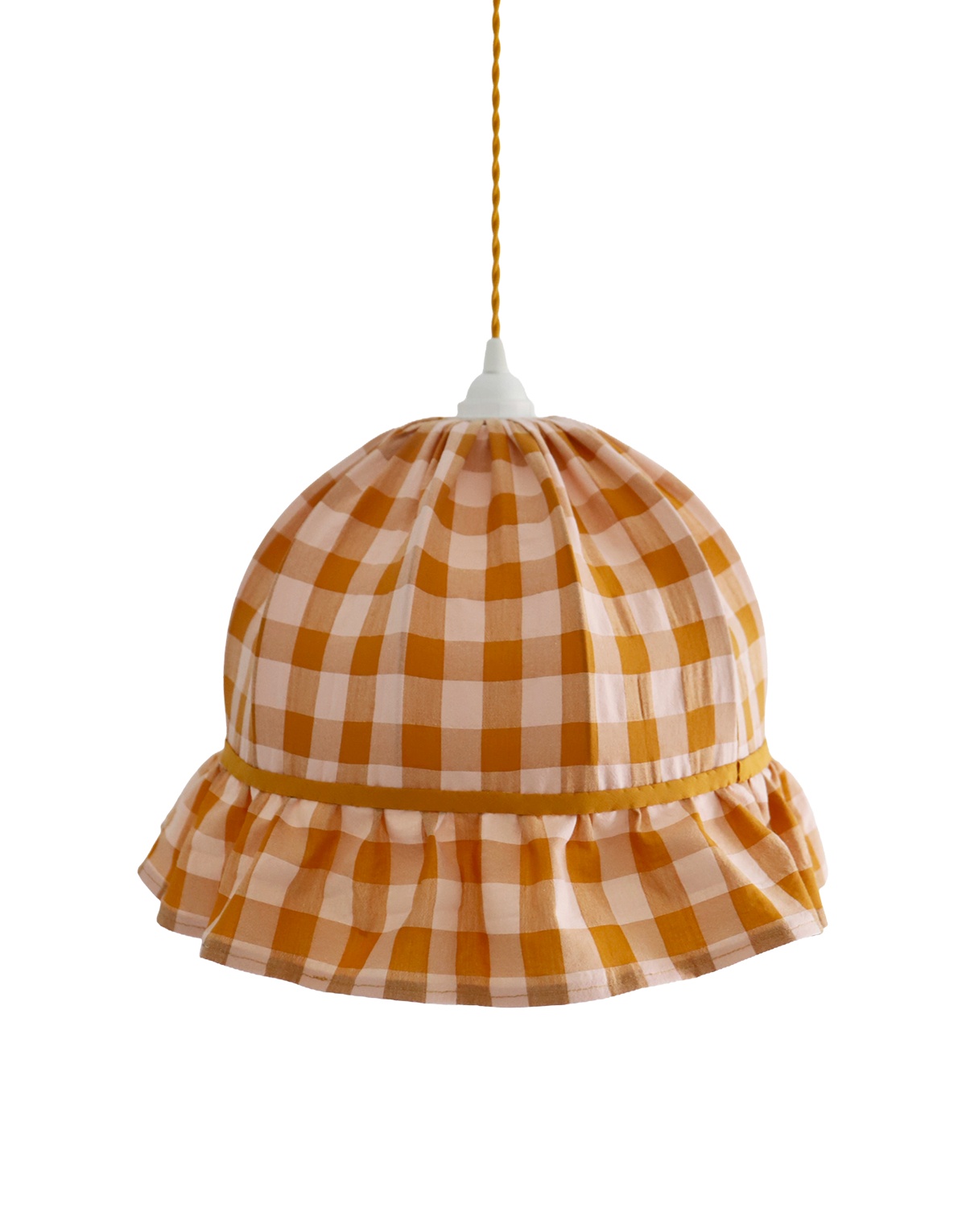 Suspension vintage dôme avec volants "imprimé vichy moutarde"
